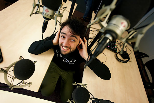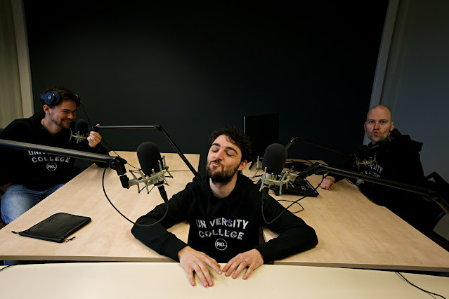 Dus dat wil zeggen: de geluidsopnames, interviews, scenario’s schrijven, shownotes, montage, jingles, promotie, … . Om al meteen een cliché aan te halen: een fantastisch team hebben we en zonder de collega’s zou het nooit zo plezant zijn. Zelf neem ik al het schriftelijke voor m’n rekening (en bemoei ik mij misschien teveel met alle andere dingen. Dus @ collega’s, sorry daarvoor!). Standaard doen we voorgesprekken met onze gasten om van daaruit scenario’s te schrijven, en dat is best gedetailleerd zodat we een duidelijke structuur kunnen handhaven. En ja, inhoudelijk zijn wij de baas eh! Wij zijn de hosts, de podcast is volledig door ons en voor iedereen: uw vriend, uw vriendin, uw baas, uw collega, uwe kleine, uwe bompa in de zetel. Het is voor ons erg belangrijk dat het duidelijk en laagdrempelig wordt overgebracht zodat iedereen er iets van kan opdoen.